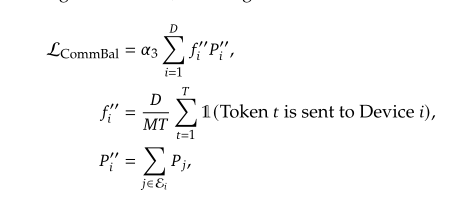 - 专家通常分配到不同的硬件加速器上,为减少通信开销,额外要求每个token最多分布到$M$个设备上。